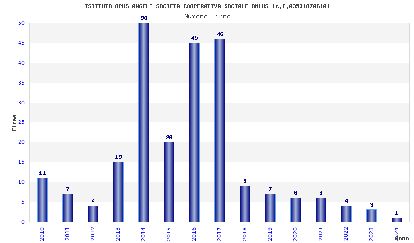 | Anno | Firme | Importi | Media | Naz. | Reg. | Prov. | Comu. |