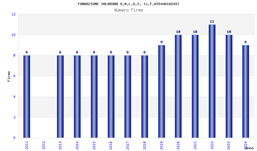 | Anno | Firme | Importi | Media | Naz. | Reg. | Prov. | Comu. |