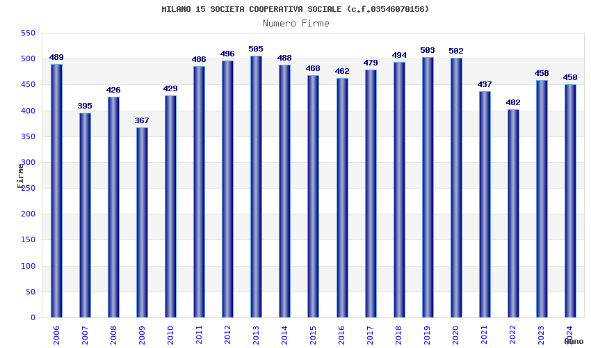 | Anno | Firme | Importi | Media | Naz. | Reg. | Prov. | Comu. |