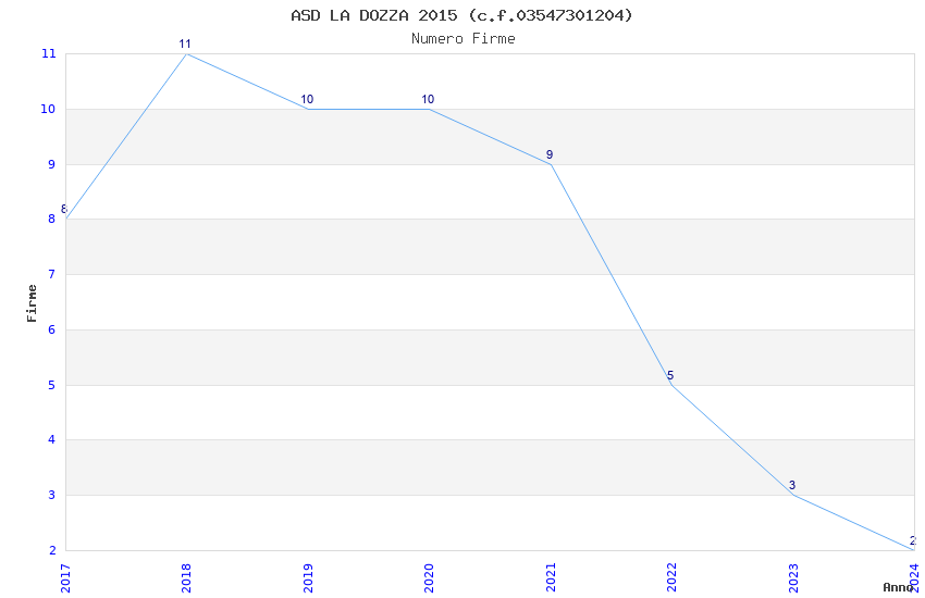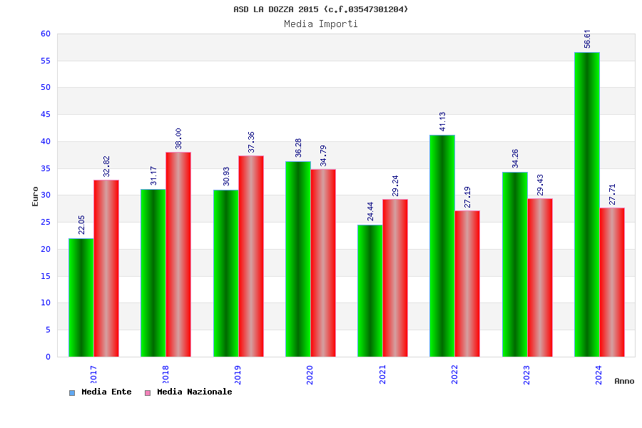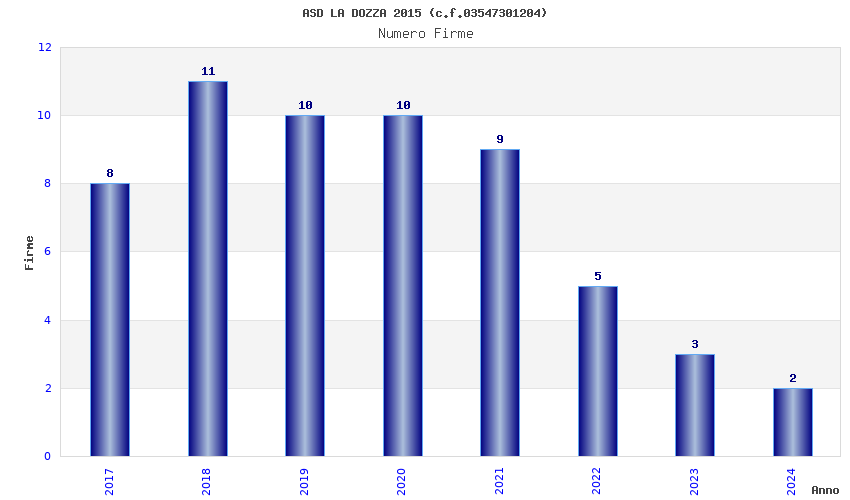 | Anno | Firme | Importi | Media | Naz. | Reg. | Prov. | Comu. |