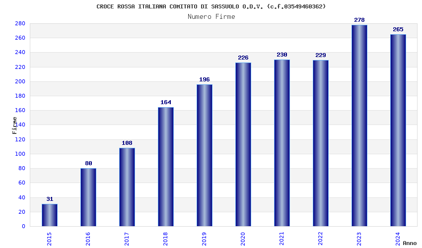 | Anno | Firme | Importi | Media | Naz. | Reg. | Prov. | Comu. |