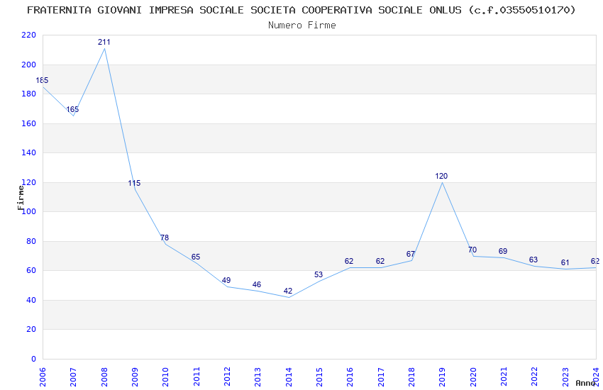 | 2024 | 62 | 3.495,69 | 56,38 | 15.210 | 3.322 | 422 | 3 |