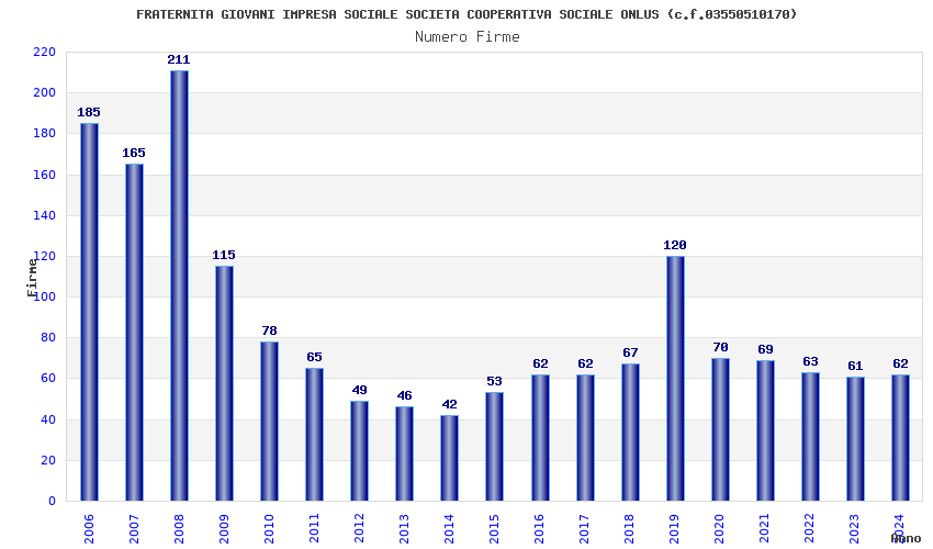 | Anno | Firme | Importi | Media | Naz. | Reg. | Prov. | Comu. |