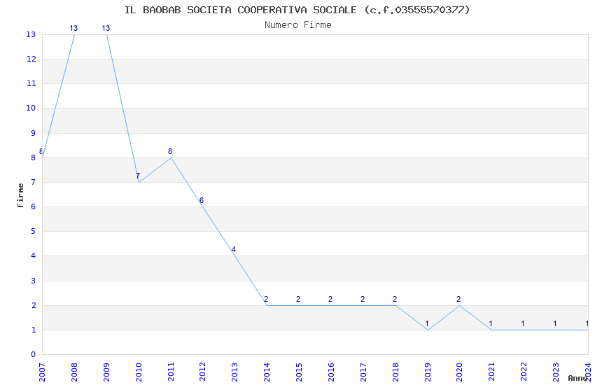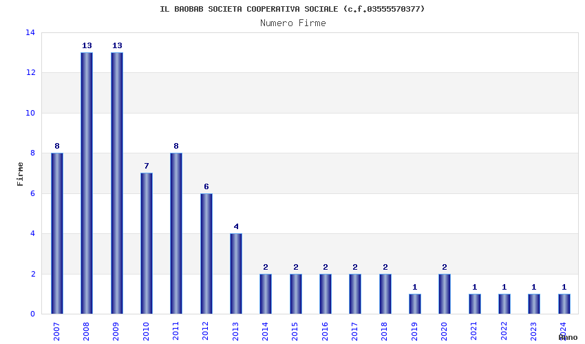 | Anno | Firme | Importi | Media | Naz. | Reg. | Prov. | Comu. |