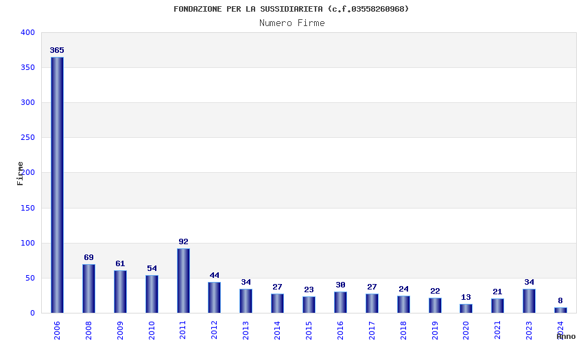 Anno Firme Importi Media Naz. Reg. Prov. Comu.