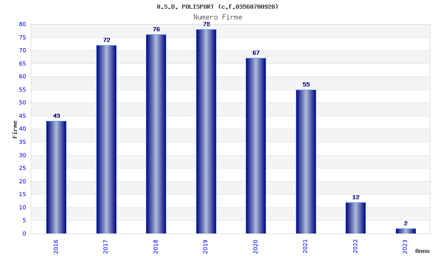 | Anno | Firme | Importi | Media | Naz. | Reg. | Prov. | Comu. |