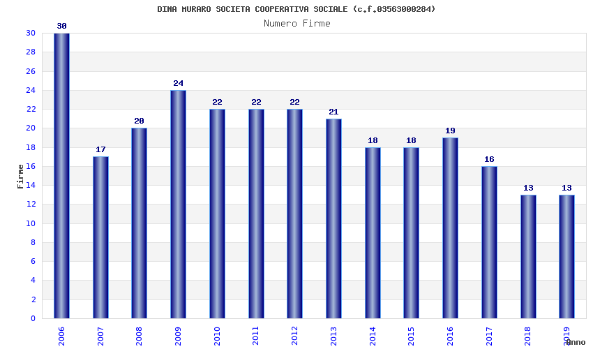 | Anno | Firme | Importi | Media | Naz. | Reg. | Prov. | Comu. |