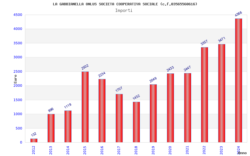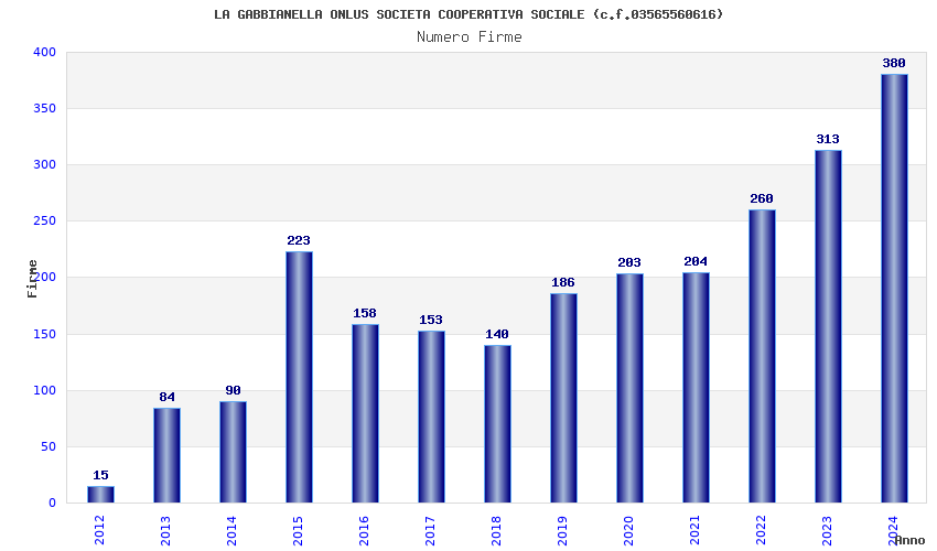 | Anno | Firme | Importi | Media | Naz. | Reg. | Prov. | Comu. |