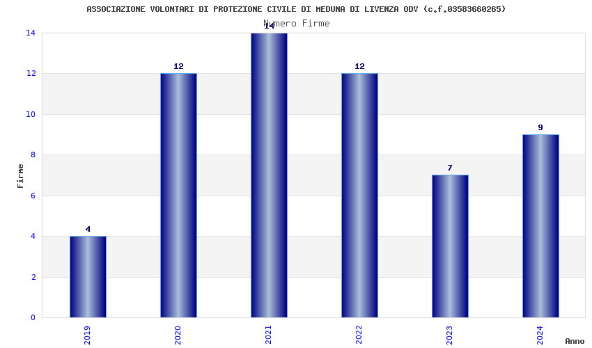 | Anno | Firme | Importi | Media | Naz. | Reg. | Prov. | Comu. |