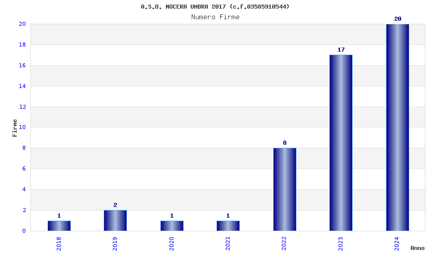 | Anno | Firme | Importi | Media | Naz. | Reg. | Prov. | Comu. |