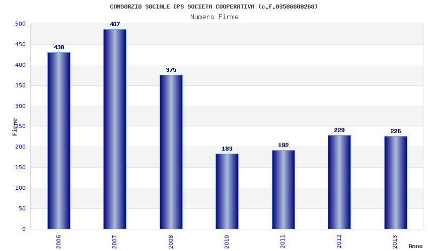| Anno | Firme | Importi | Media | Naz. | Reg. | Prov. | Comu. |