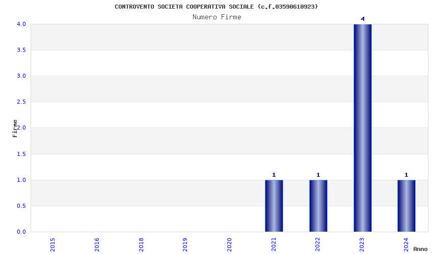 | Anno | Firme | Importi | Media | Naz. | Reg. | Prov. | Comu. |