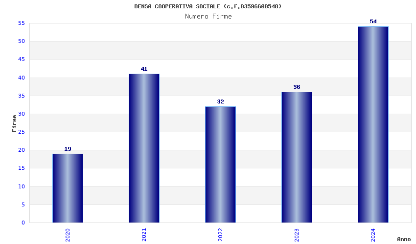 | Anno | Firme | Importi | Media | Naz. | Reg. | Prov. | Comu. |