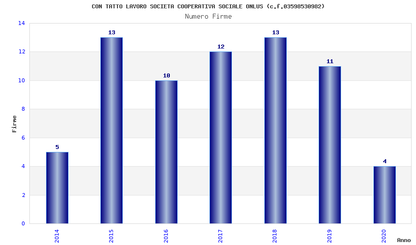 | Anno | Firme | Importi | Media | Naz. | Reg. | Prov. | Comu. |