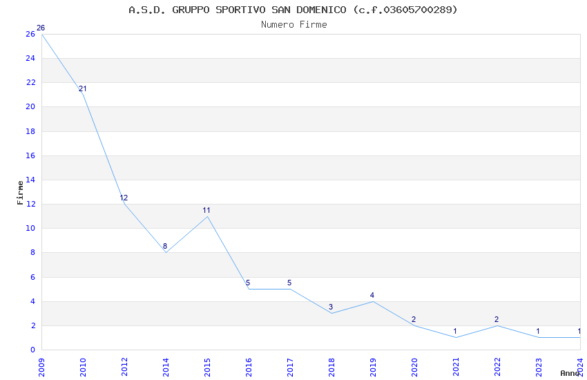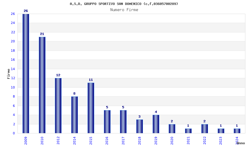 | Anno | Firme | Importi | Media | Naz. | Reg. | Prov. | Comu. |