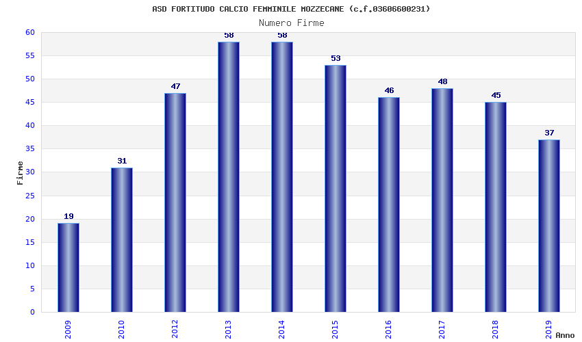 | Anno | Firme | Importi | Media | Naz. | Reg. | Prov. | Comu. |