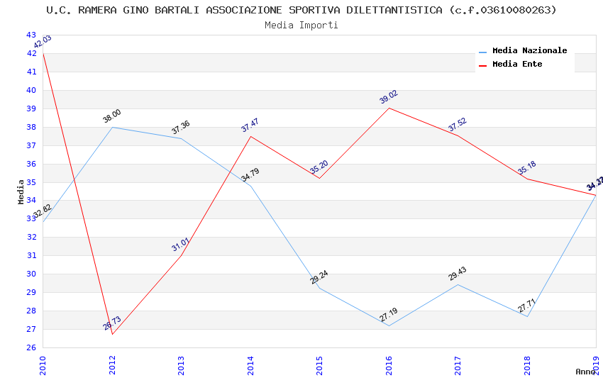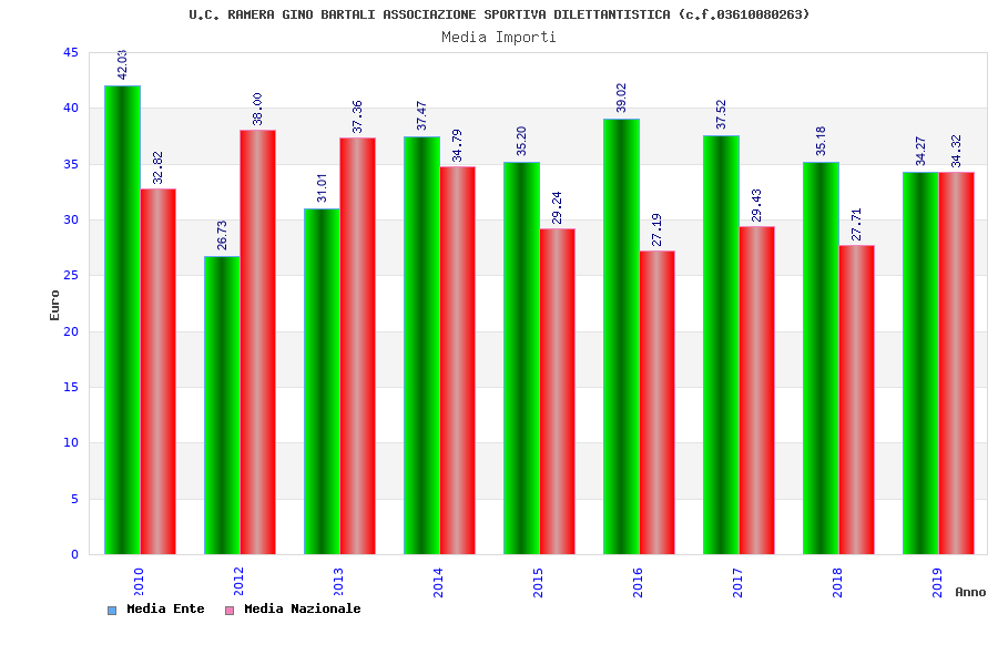 | Anno | Firme | Importi | Media | Naz. | Reg. | Prov. | Comu. |
