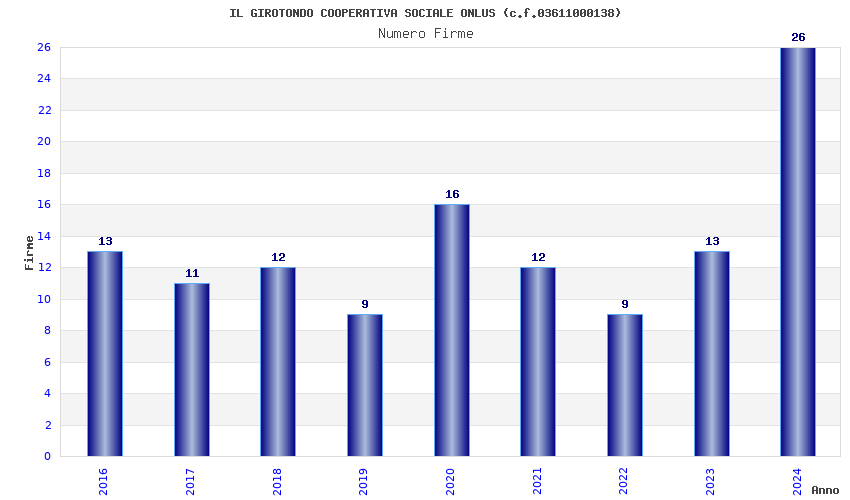 | 2024 | 26 | 735,58 | 28,29 | 43.770 | 8.598 | 464 | 11 |