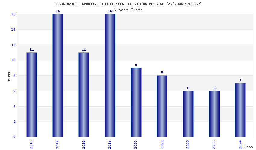 | 2019 | 16 | 401,61 | 25,10 | 48.543 | 4.350 | 571 | 11 |