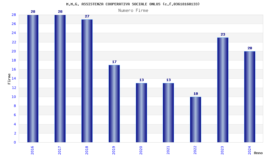 | Anno | Firme | Importi | Media | Naz. | Reg. | Prov. | Comu. |