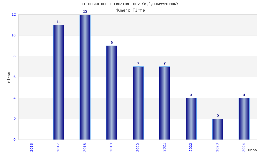 | Anno | Firme | Importi | Media | Naz. | Reg. | Prov. | Comu. |