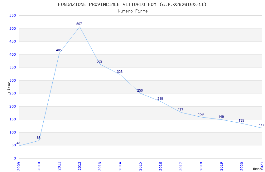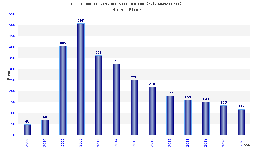 | Anno | Firme | Importi | Media | Naz. | Reg. | Prov. | Comu. |