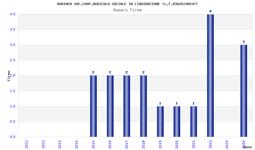 | Anno | Firme | Importi | Media | Naz. | Reg. | Prov. | Comu. |