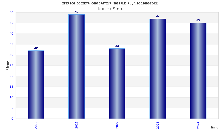 | Anno | Firme | Importi | Media | Naz. | Reg. | Prov. | Comu. |