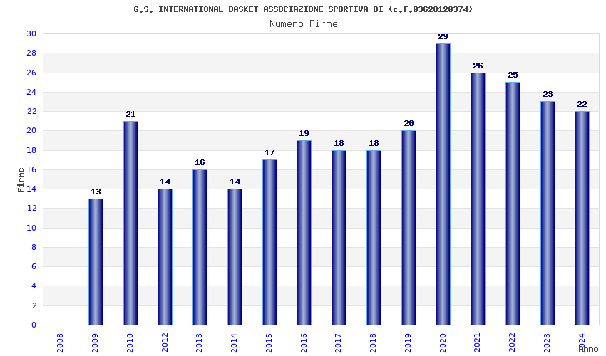 | Anno | Firme | Importi | Media | Naz. | Reg. | Prov. | Comu. |
