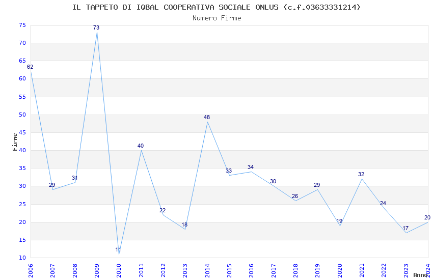| 2009 | 73 | 2.780,07 | 38,08 | 13.647 | 660 | 321 | 5 |