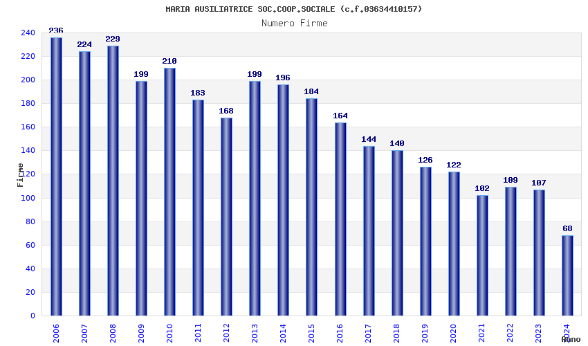 | Anno | Firme | Importi | Media | Naz. | Reg. | Prov. | Comu. |