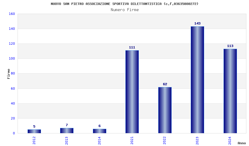| Anno | Firme | Importi | Media | Naz. | Reg. | Prov. | Comu. |