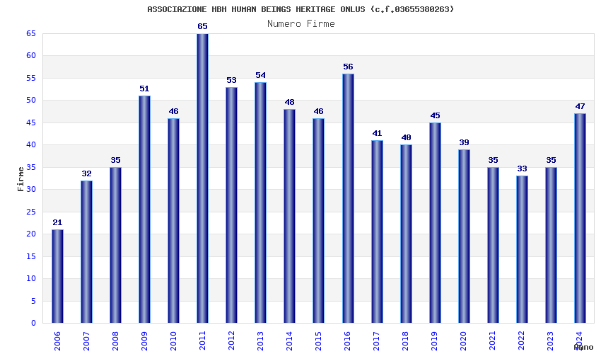 | 2011 | 65 | 3.561,16 | 54,79 | 10.215 | 903 | 130 | 2 |