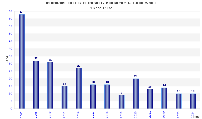 | Anno | Firme | Importi | Media | Naz. | Reg. | Prov. | Comu. |