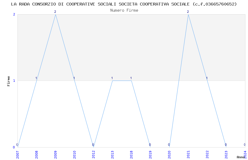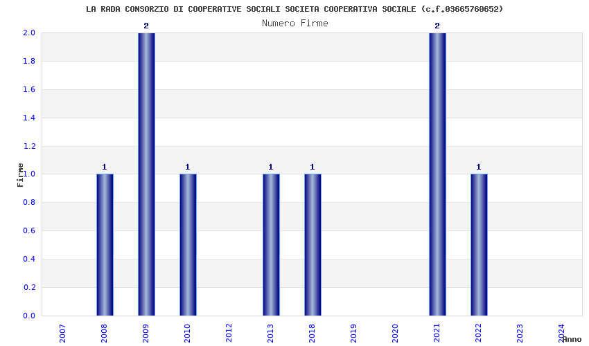 | Anno | Firme | Importi | Media | Naz. | Reg. | Prov. | Comu. |