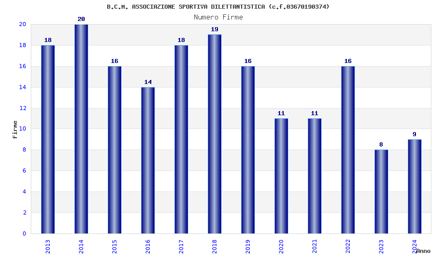 | Anno | Firme | Importi | Media | Naz. | Reg. | Prov. | Comu. |