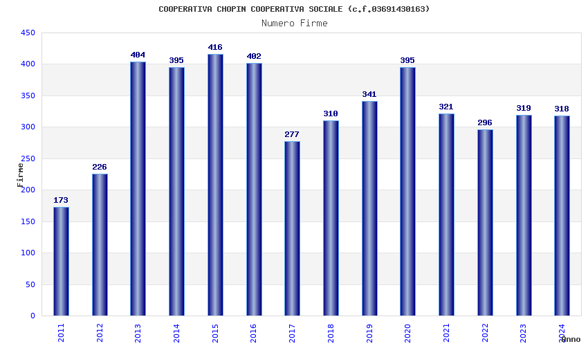| Anno | Firme | Importi | Media | Naz. | Reg. | Prov. | Comu. |