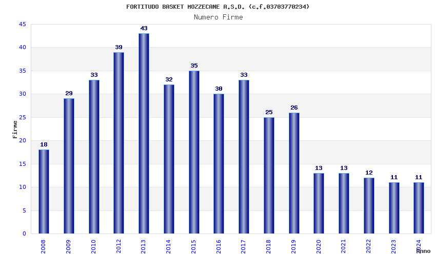 | Anno | Firme | Importi | Media | Naz. | Reg. | Prov. | Comu. |