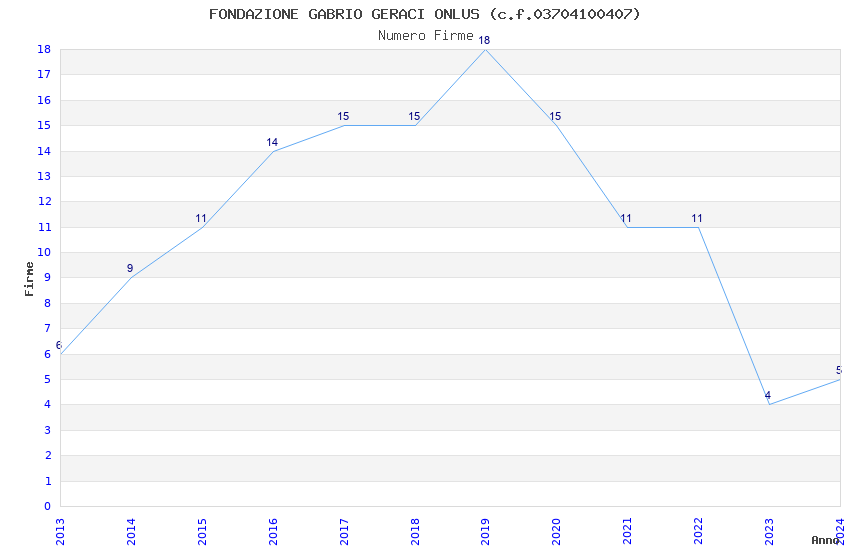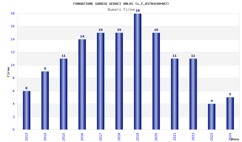 | Anno | Firme | Importi | Media | Naz. | Reg. | Prov. | Comu. |