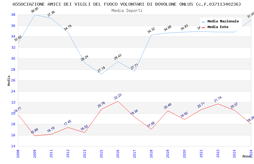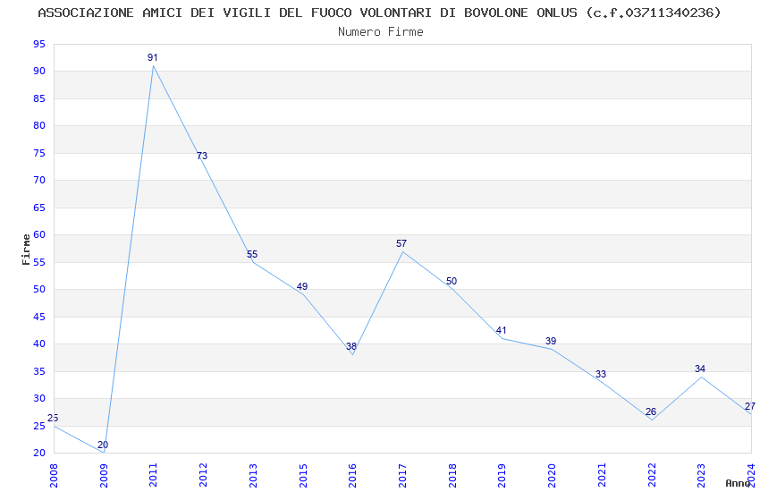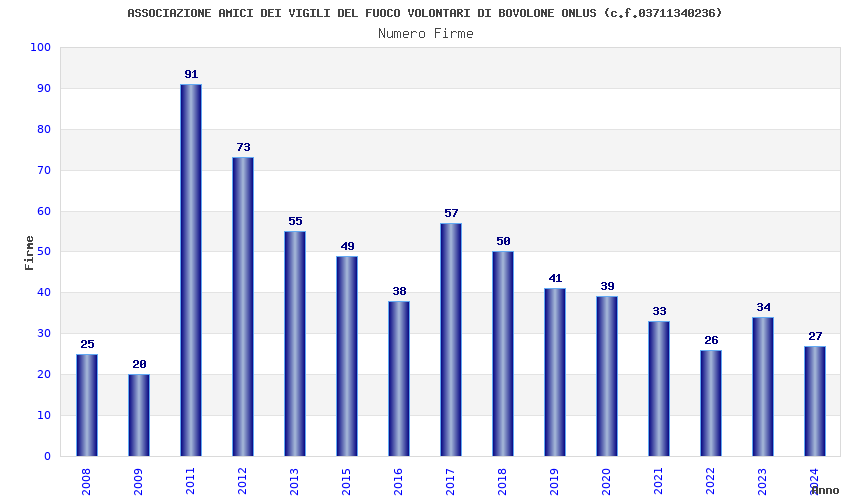 | Anno | Firme | Importi | Media | Naz. | Reg. | Prov. | Comu. |