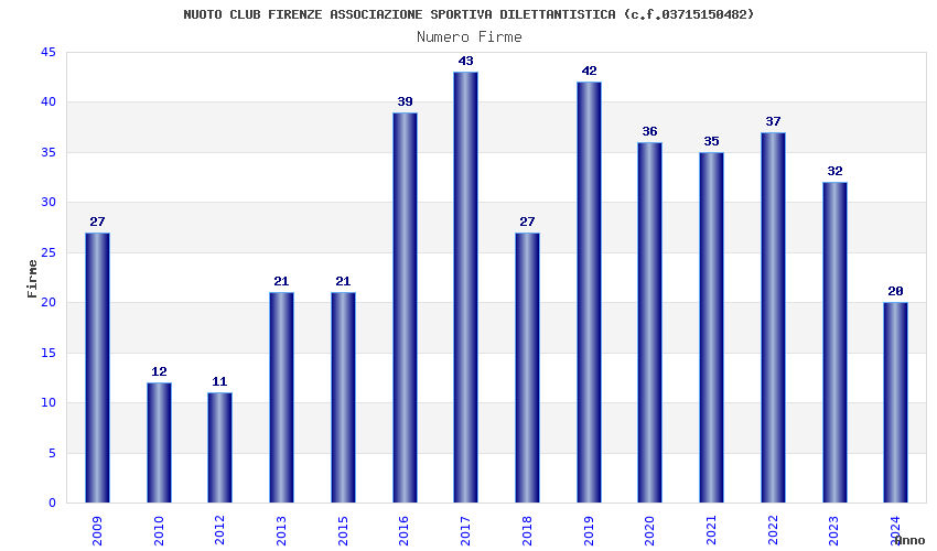 | Anno | Firme | Importi | Media | Naz. | Reg. | Prov. | Comu. |