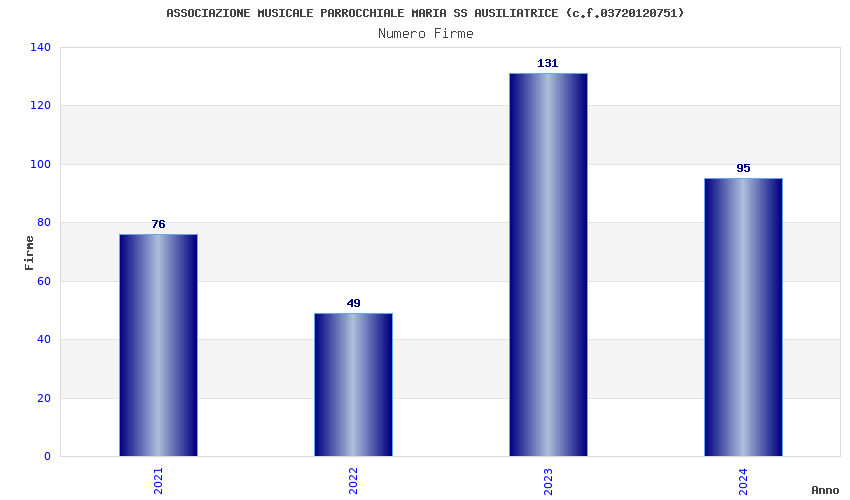 | Anno | Firme | Importi | Media | Naz. | Reg. | Prov. | Comu. |