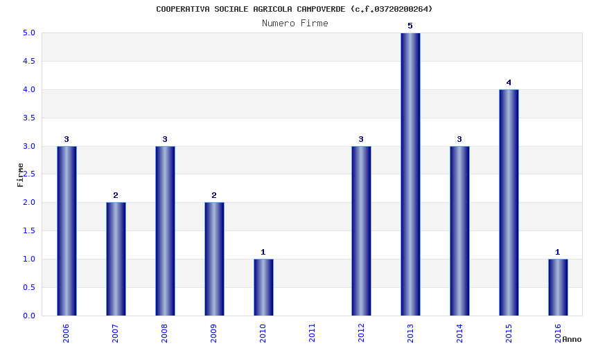 | Anno | Firme | Importi | Media | Naz. | Reg. | Prov. | Comu. |