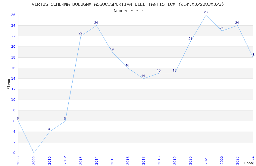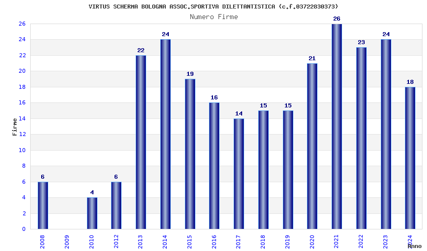 | Anno | Firme | Importi | Media | Naz. | Reg. | Prov. | Comu. |