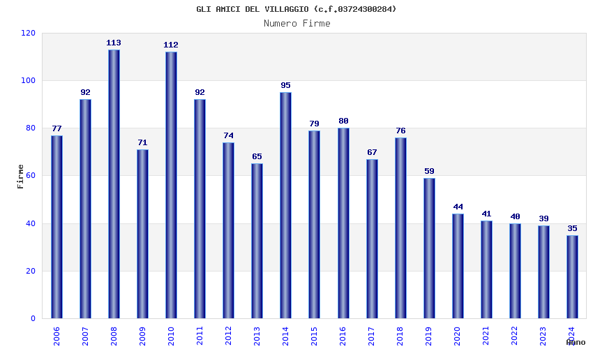 | Anno | Firme | Importi | Media | Naz. | Reg. | Prov. | Comu. |