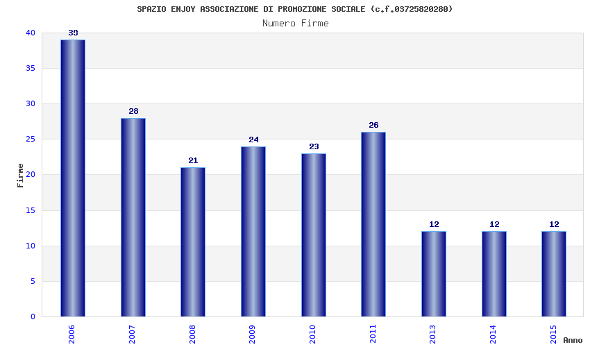 | Anno | Firme | Importi | Media | Naz. | Reg. | Prov. | Comu. |