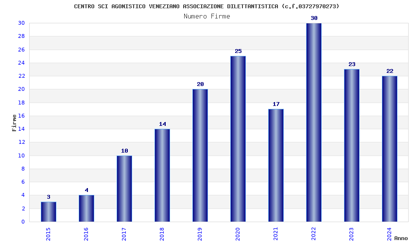 | Anno | Firme | Importi | Media | Naz. | Reg. | Prov. | Comu. |