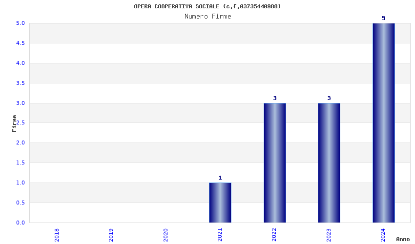 | Anno | Firme | Importi | Media | Naz. | Reg. | Prov. | Comu. |