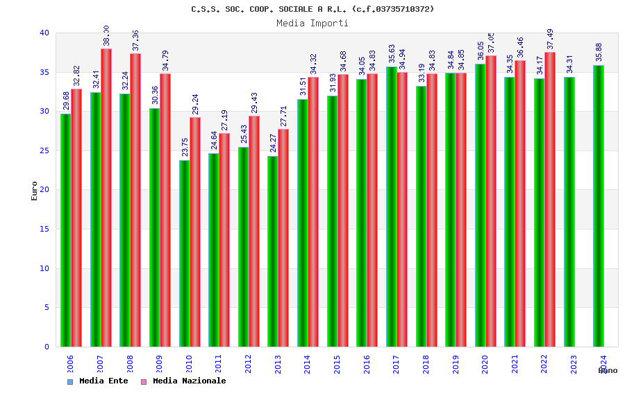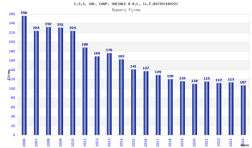 | Anno | Firme | Importi | Media | Naz. | Reg. | Prov. | Comu. |