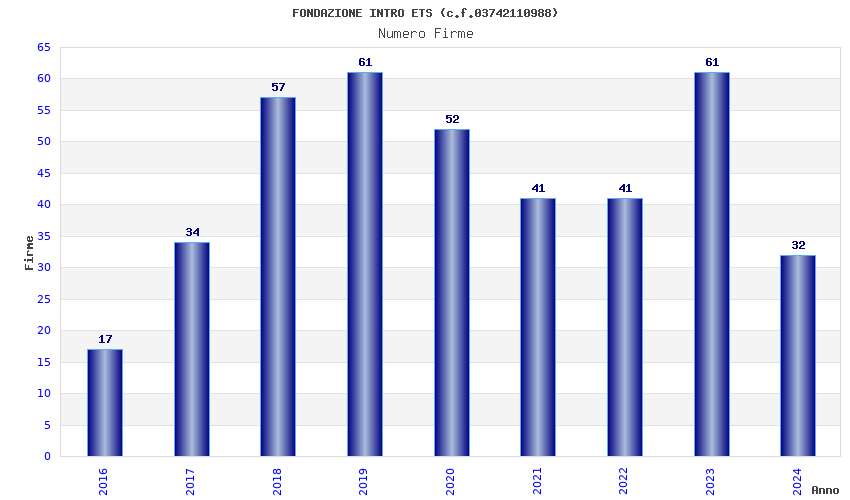 | Anno | Firme | Importi | Media | Naz. | Reg. | Prov. | Comu. |